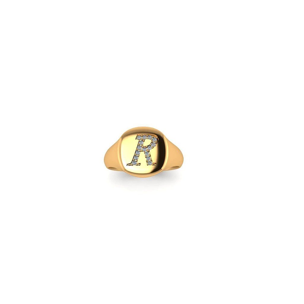 Escolha a letra R de brilhantes para o seu anel de dedinho.