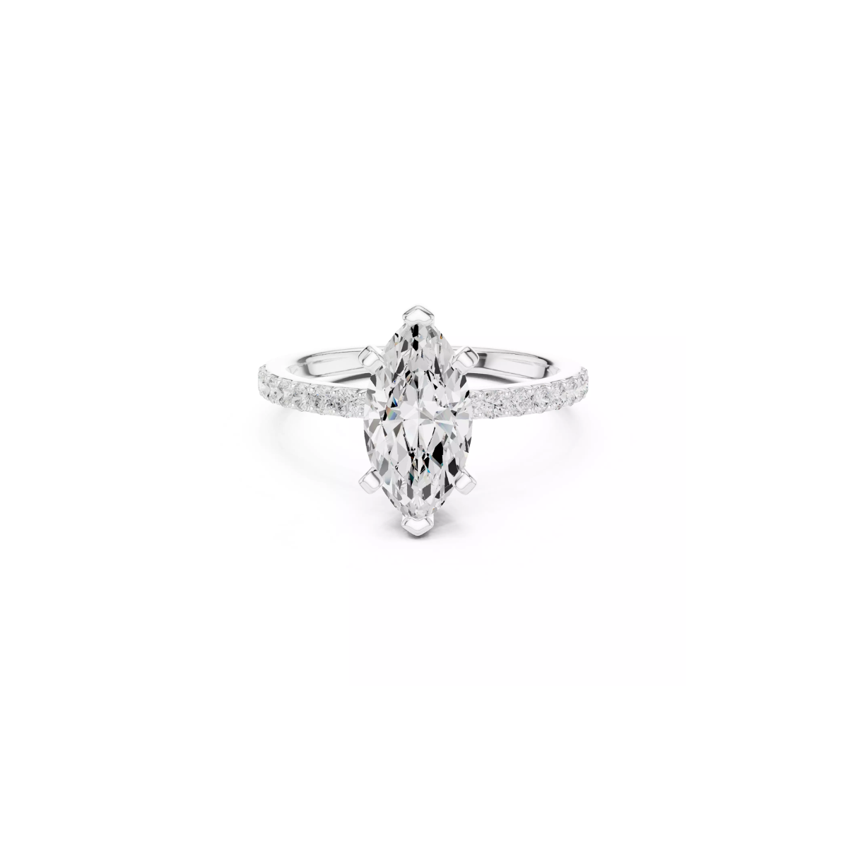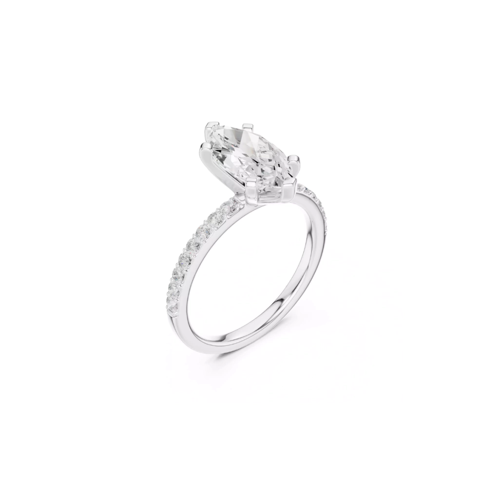 Anel Valen 2,22 quilates Solitário Navete em Prata 925 com Moissanitas | Aro Cravejado