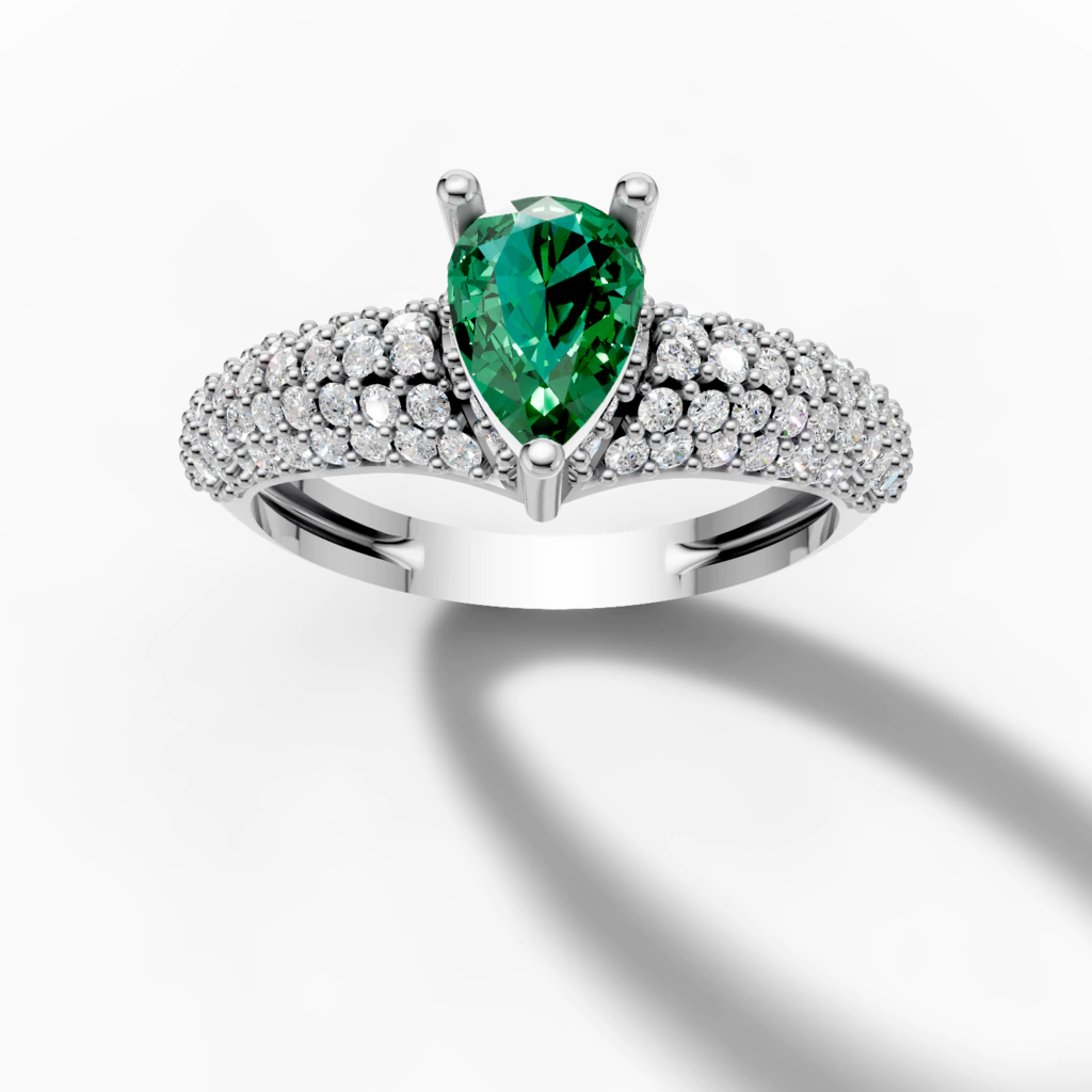 Descubra a sofisticação e o brilho incomparável do Aparador de Esmeralda Gota e Diamantes. Esta joia majestosa, com sua esmeralda em formato de gota, destaca-se pela beleza, tamanho e volume das pedras, tornando-se o acessório perfeito para quem deseja elevar seu estilo com elegância.